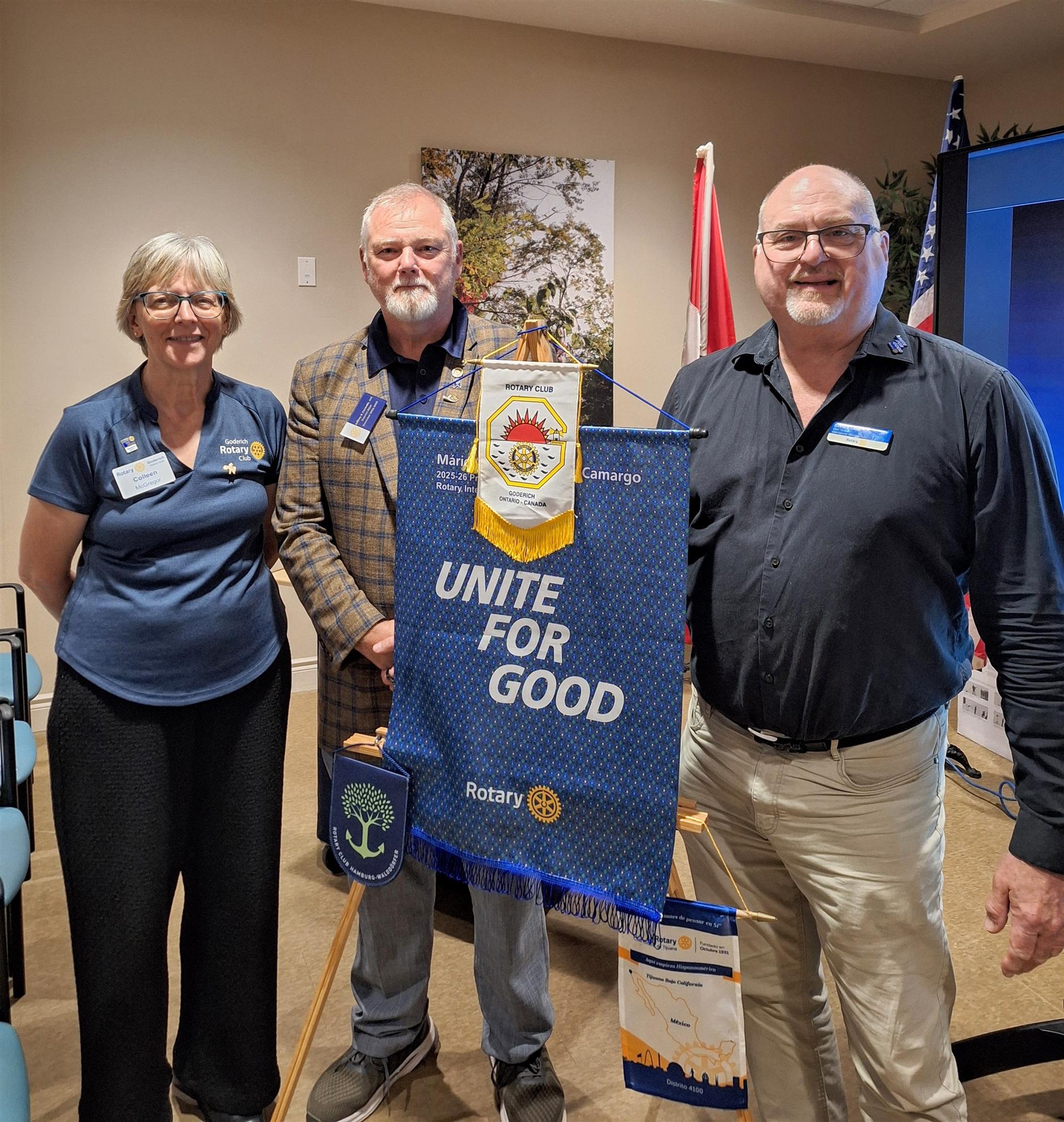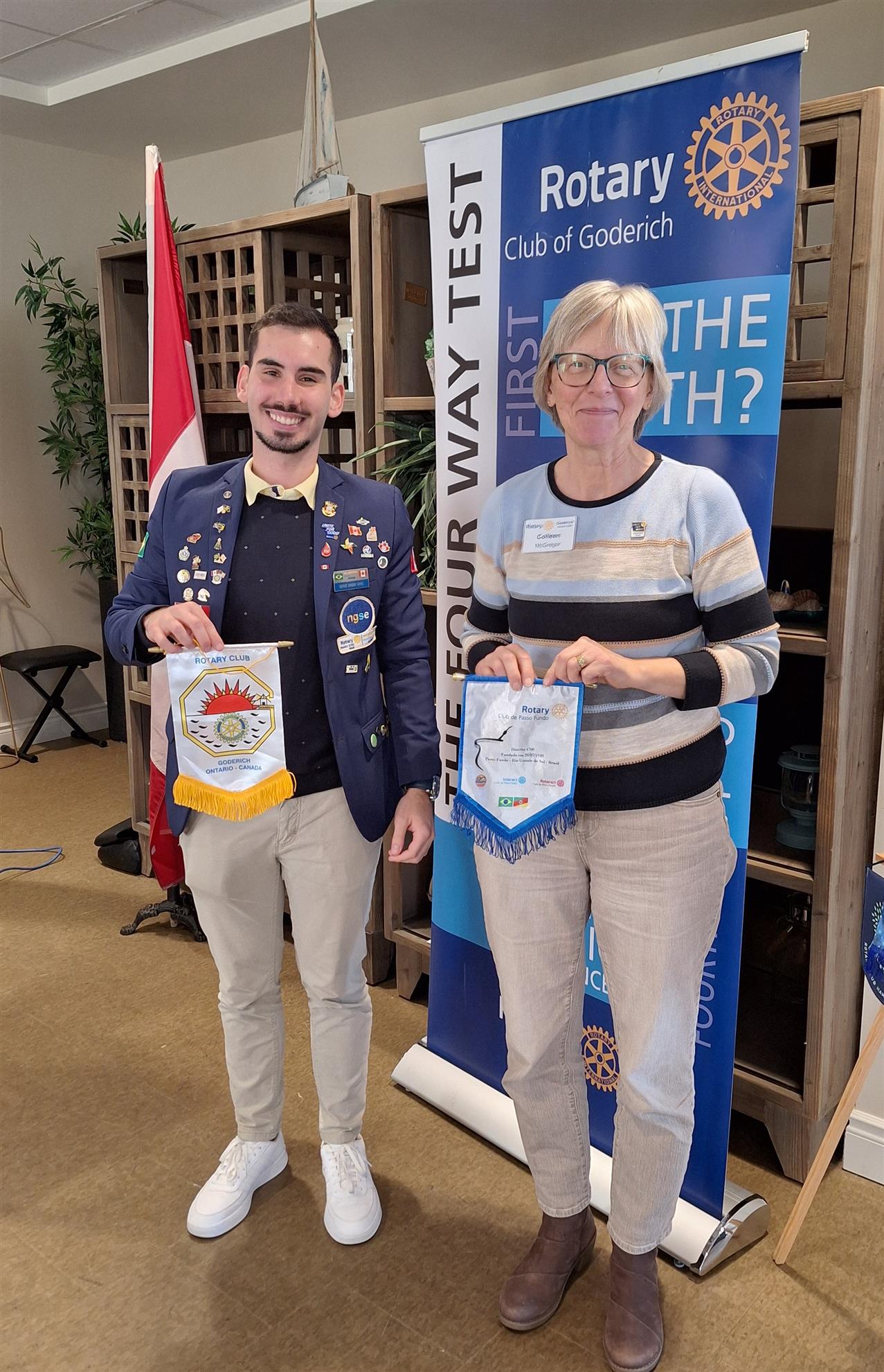 In a special moment of Rotary tradition, Heitor was pictured exchanging club flags with President Colleen McGregor, symbolizing friendship and global connection.